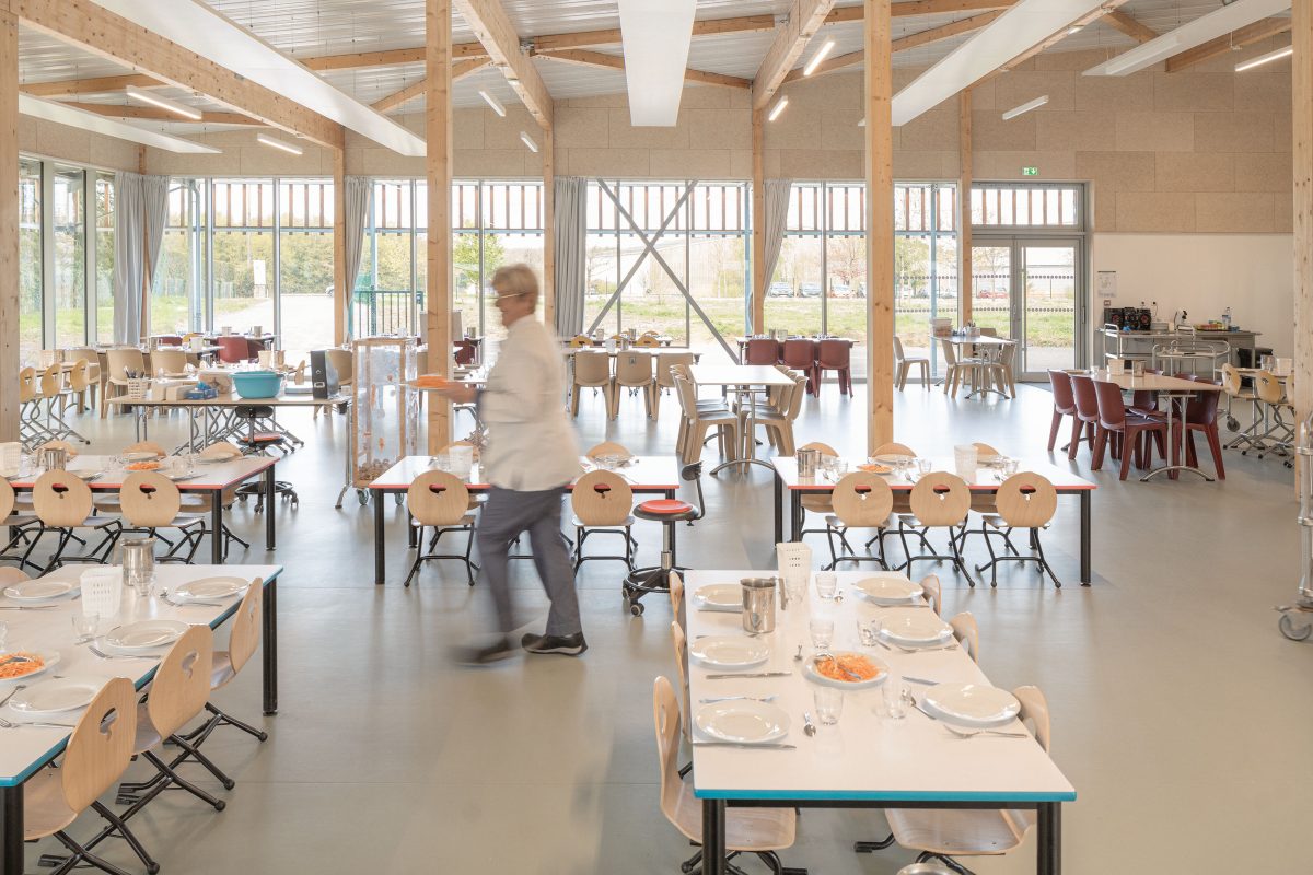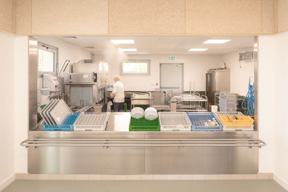 Le projet d’extension du restaurant scolaire s’inscrit dans une démarche concertée entre la maîtrise d’ouvrage et la maîtrise d’œuvre, visant à améliorer les conditions d’accueil des plus jeunes tout en préservant les qualités existantes du site. Le choix d’implanter l’extension en retrait de la salle actuelle permet de maintenir une luminosité généreuse dans les espaces de restauration existants, tout en affirmant une nouvelle entité dédiée aux élèves de maternelle, adaptée à leurs usages et à leurs rythmes.