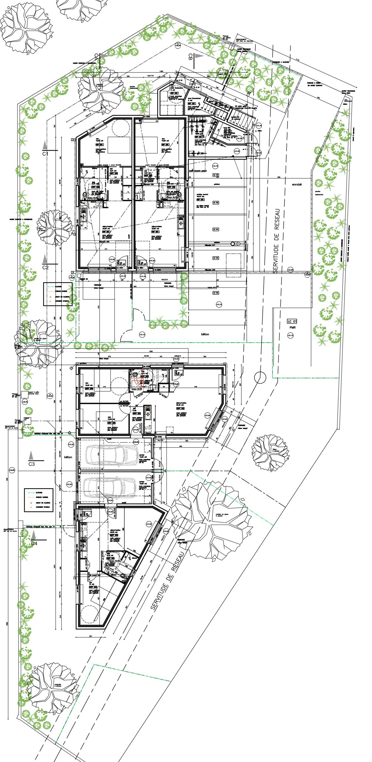 les logement individuels bénéficient d’un grand jardin privatif. les logement collectif sont tous traversant et bénéficie d’un accès différencié (accès individuelle, par coursive, par couloir) et d’un espace extérieur différencié (jardin, balcon, loggia, terrasse)