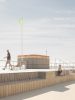 Si l’utilisation du bois renvoi à l’image des constructions provisoires du front de mer, le choix des essences se fait dans une volonté de durabilité. Les platelages et les mains courantes sont en bois exotique, seul capable de résister à cet environnement exigent.